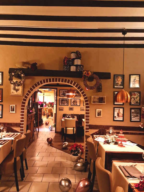 Vous vous sentirez d'emblée comme chez vous, que ce soit dans notre restaurant (28 personnes), dans notre salle à l'arrière (18 places) ou sur notre terrasse (40 places).
